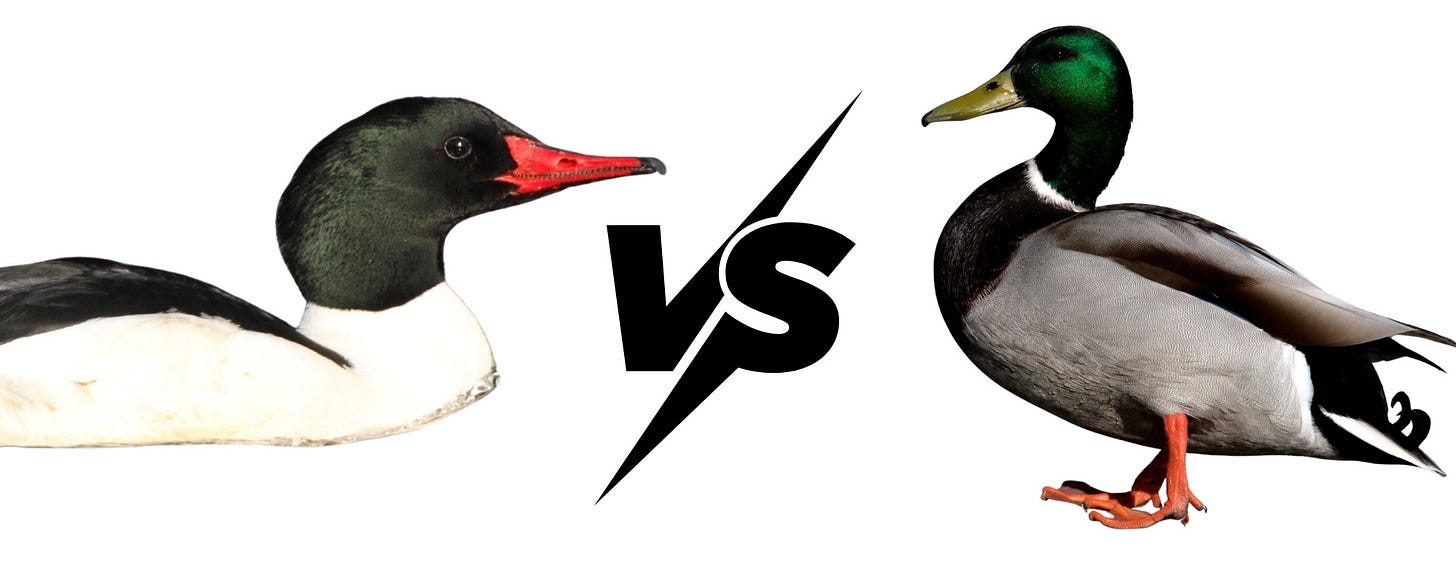 Ducks such as scaups and pochards can look pretty similar to dabbling ducks in general morphology and position on the water’s surface but will behave more like their merganser counterparts when feeding!